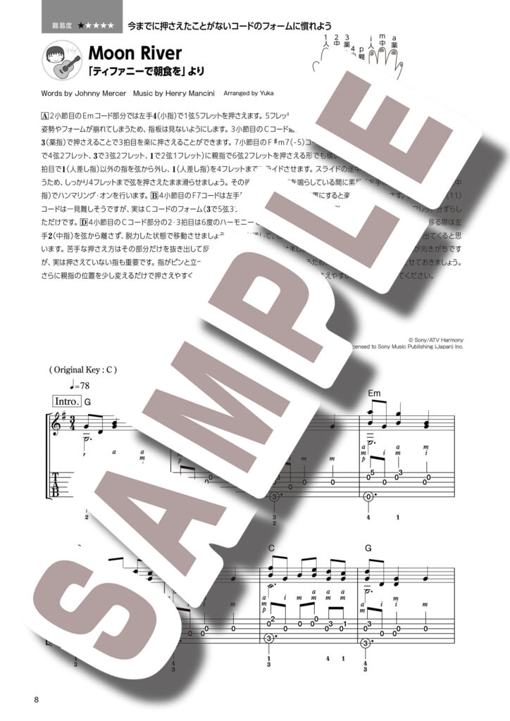 特にこの「ムーンリバー」は、本書の最初のページの曲であり、最も難易度を抑えた「はじまりの1曲」です。