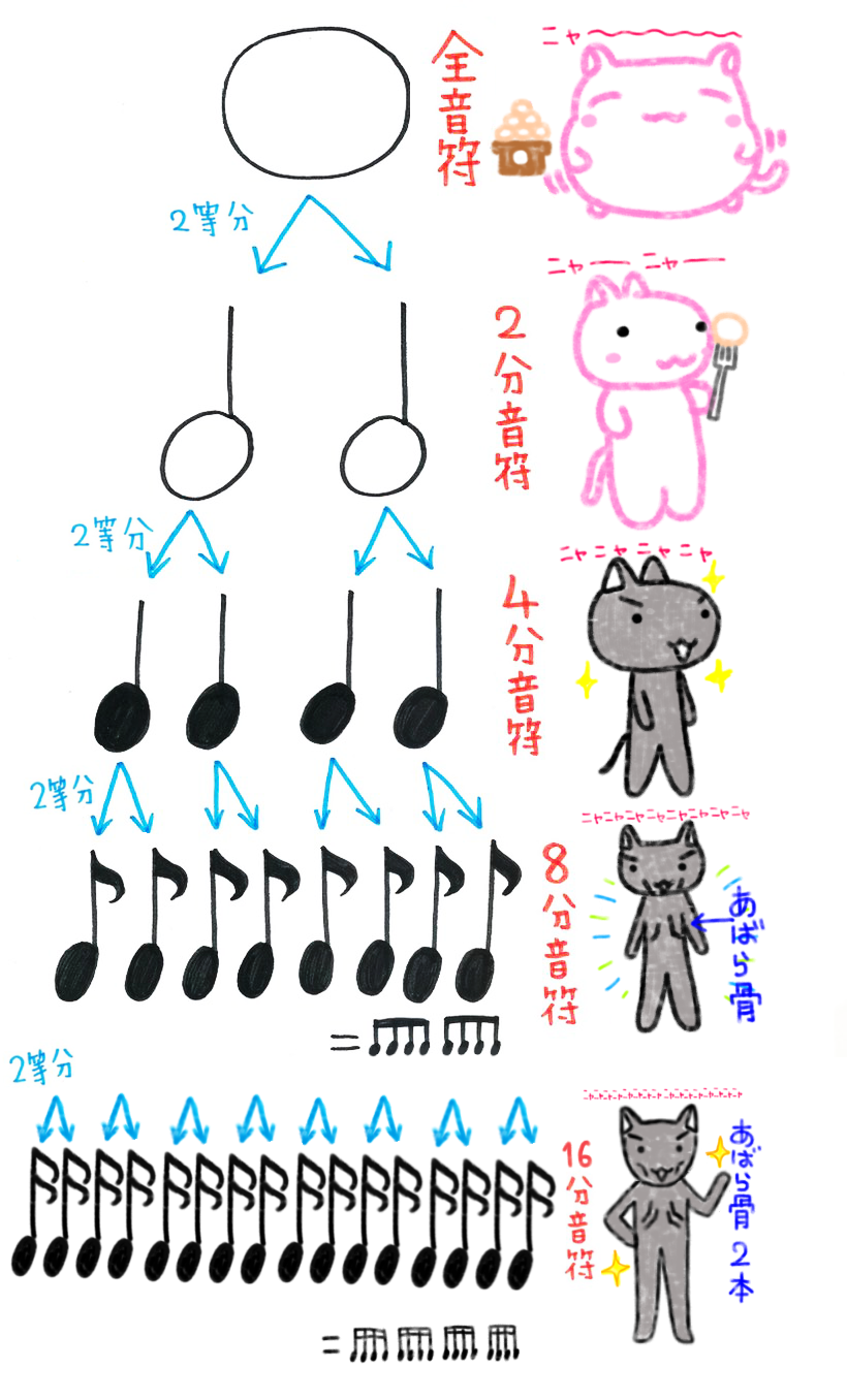 ↑一番下の、あばらぼね2本の16分音符猫が一切登場しません。